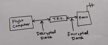 Figure 2: Envisioned application of the Teensy Encryption Device: Data is collected from sensors by the flight computer, send to the TED for encryption, then forwarded to the radio for transmission. Raw data is never transmitted over the radio.